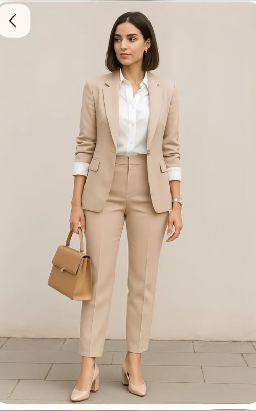 White Shirt and Blue JeansRs.1000/- Rus Top paird with dark Denim Rs.2000/- White Shirt and rolled-up jeans Rs.2400/- Navy blazer and cream trousers paired Rs.3000/- Beigre tailored suit with white shirt and trouserRs.2500/- Black leather jacket with Wide-leg jeansRs.4000/- Creamy Blazer with Navy TrouserRs,1500/- Blue Bottom Jeans and White shirtRs.3500/- Navy Blazer and sky blue jeans pairedRs.4000/-
